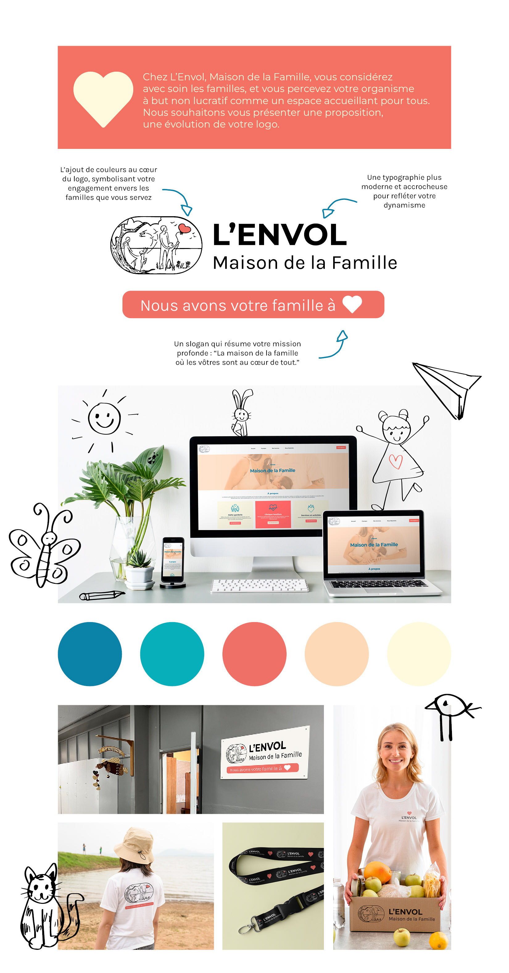 Avec la création d'un nouveau siteweb, nous avons travailler a moderniser l'identité visuel de l'OBNL. Nous avons penser à l'importance de la Maison de la Famille dans son entourage et avons voulu garder l'essence de base de leur logo.